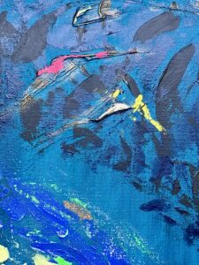 Описание -Тази абстрактна творба продължава енергията на „Шепот в нощта“ – плавно преплитане на светло синьо, тюркоазено, цикламено и златно, в което се усеща дишането на тишината. Без образ, но пълна с присъствие, тя е отражение на вътрешния мир и светлина, които живеят дори в най-тихите мигове. ✨ Разгледайте „Шепот в нощта“ в галерия и направете прекрасен завършек на интериора.