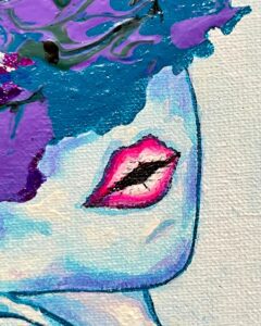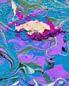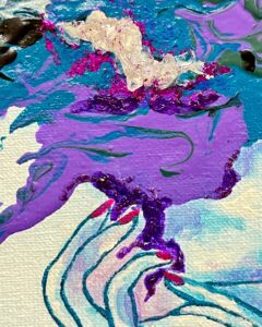 Техника: акрилна и смесена техника върху платно – включва акрилна боя, флуидно изкуство, лилав шлакметал, прозрачни кристали