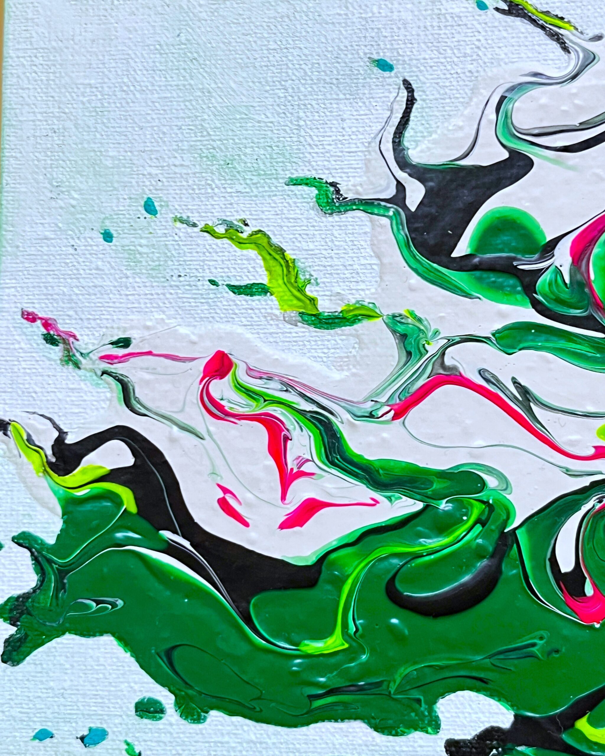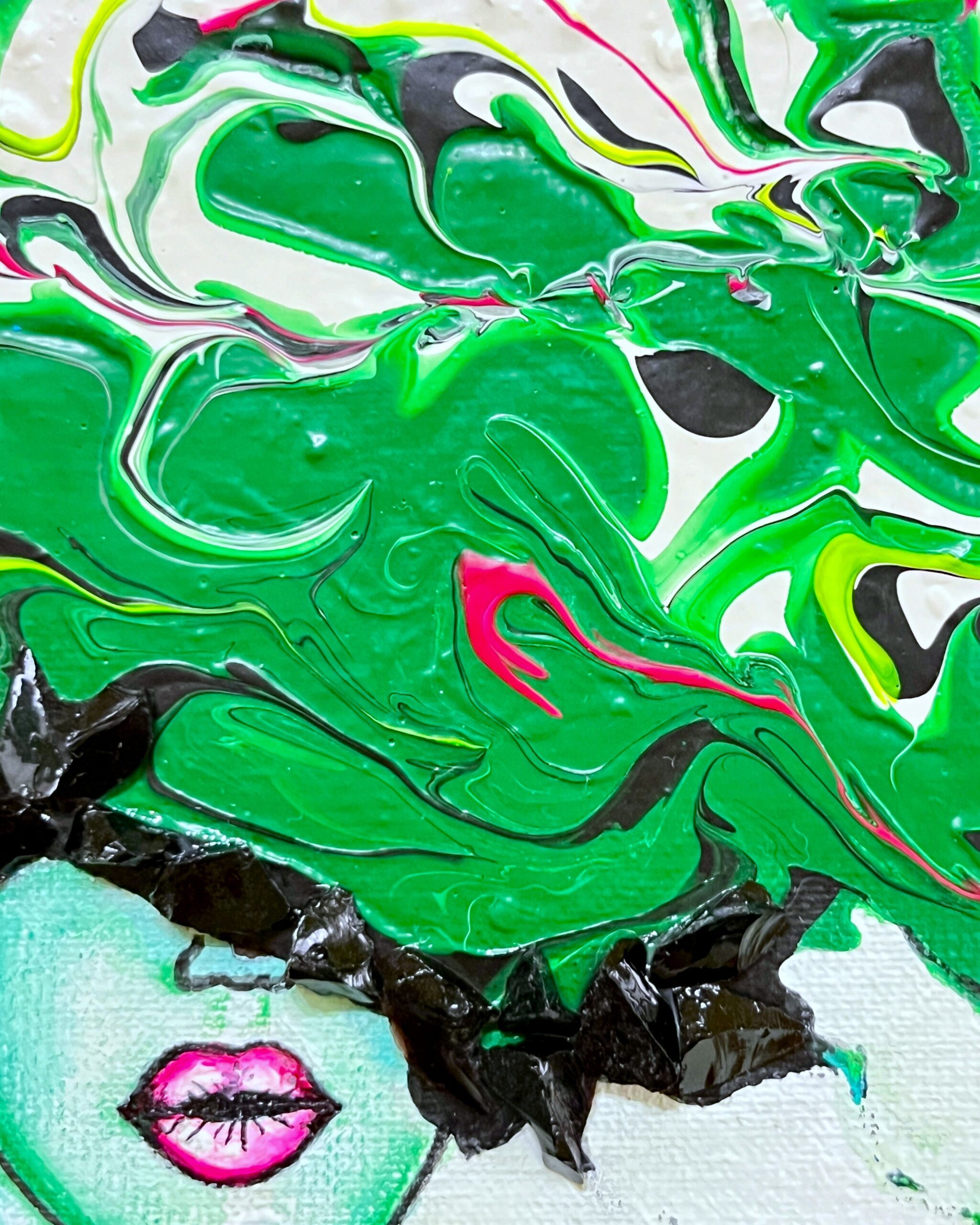 Техника: акрилна и смесена техника върху платно – включва акрилна боя, флуидно изкуство, черни кристали